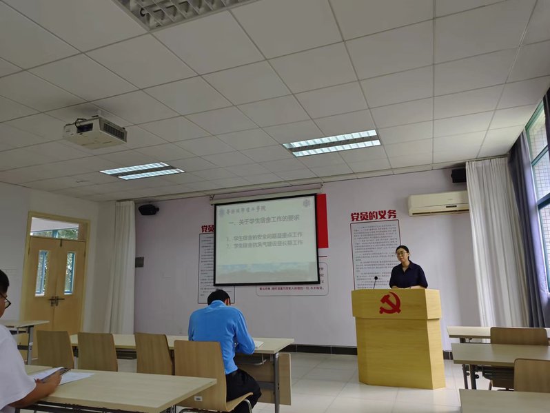 会上,学院学工办副主任师雯俏传达学校近期相关工作会议内容,围绕宿舍安全问题、学生晚归情况、防诈骗工作等进行详细的讲解。通过数据展示了近段时间各年级学生晚归情况,她说到,各位老师要详细了解每位晚归同学的情况,做好教育工作,提醒同学们遵守校纪校规,如有特殊情况及时上报,并关心因看病等晚归的同学。针对宿舍安全问题,师雯俏强调宿舍安全是学生宿舍工作的重点工作,学生宿舍的风气建设是长期工作,平时要加强同学们宿舍安全意识,不要使用违规和大功率电器。同时结合近期发生的诈骗案件,她表示要持续做好学生防诈骗工作,提高同学们对诈骗的警惕性。