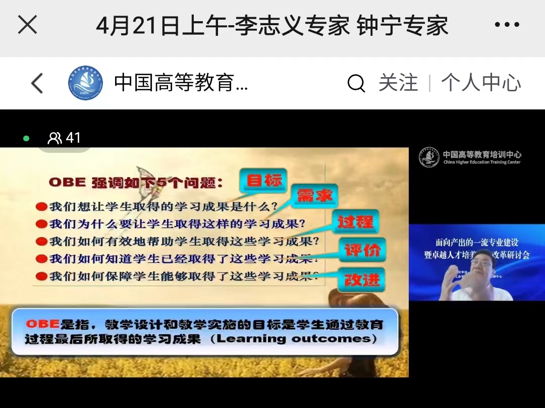 主题:产出导向的工程教育认证与专业建设