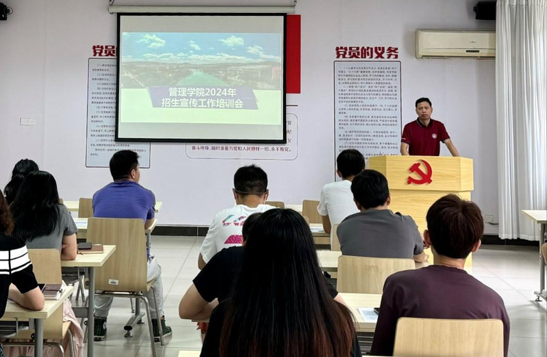 本网讯(记者 高煜)为全力做好2024年招生工作,切实提高招生宣传效果,管理学院5月9日于A8-203召开2024年招生工作动员部署会。学院书记李大章、全体辅导员及相关老师参加。