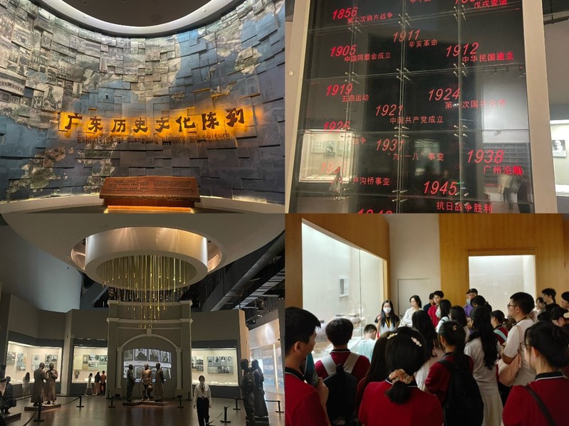 在工作人员的带领下,师生党员重点参观了“广东历史文化陈列”展厅的“粤海烽火”篇章,重温中国共产党的红色历程,聆听红色文物背后的革命故事。该篇章讲述了广东军民血与火的抗日史诗,一幅幅黑白的历史图片,展示了南粤儿女坚强不屈的革命精神,一件件红色文物,承载着党和人民英勇奋斗的光辉历史,是中国共产党人坚贞不屈、坚定信仰的见证。