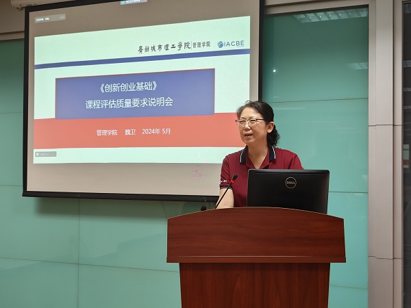 最后,魏卫对《创新创业基础》课程评估质量要求进行讲解说明,包括课程简介、教学要求、教学资料归档规范、授课要求等内容。她提出,本课程着力教育引导学生培养创新创业思维、树立创新创业意识、提升创新创业能力、激发创新创业动力,作为对大学生的通识教育,发挥着尤为重要的指引作用;学院组织资深教师对该课程的教学设计进行认真研讨,也将融入科学的教学方式和评价方法促进课程质量提升,切实做好课赛结合,实现《创新创业基础》的课程目标和人才培养要求。