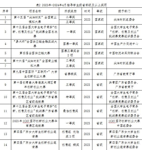 指导学生获奖情况(省部级及以上)(彭玉莲 提供)