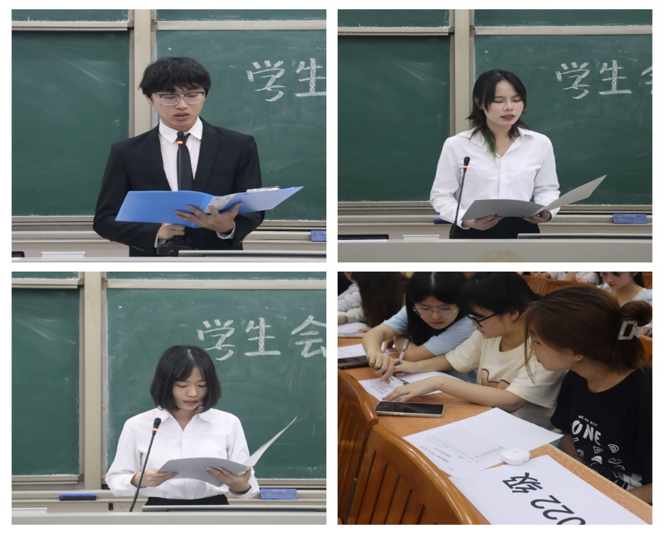 随后,学生会各部门负责人依次上台述职。综合事务部本学年协助组织学生代表大会顺利召开,精心组织了毕业照拍照志愿者工作。信息拓展部本学年共发布推文94篇,涵盖军训专题、学代会报道、体育赛事、宿舍文化节等;推文阅读量、粉丝关注量都取得明显增长。学术权益部本学年顺利完成权益调研提案工作、科技学术展、宿舍文化节的组织工作,努力为同学们提供全方位、多层次、宽领域的权益保障服务。体育部本学年组织开展院运会、篮球赛、羽毛球赛等多项运动赛事,不仅丰富了同学们的课余生活,还提高了大家参与体育锻炼的积极性,促进校园的和谐发展和学生的健康全面发展。
