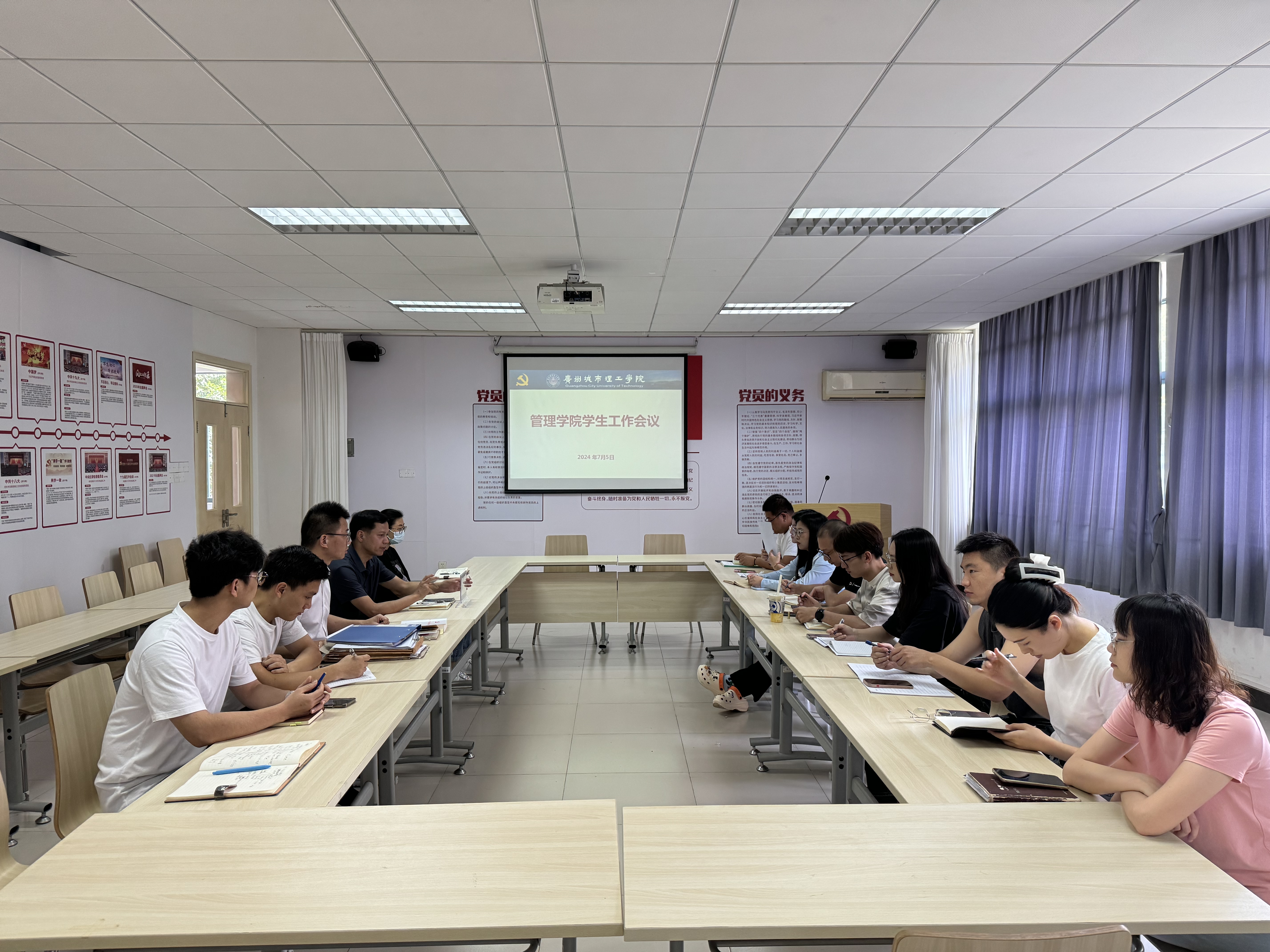 本网讯(记者 应澎)为了深化学院学工线党纪学习教育,总结本学期学生工作,部署假期工作安排,管理学院于7月5日中午在A8-203召开学期末学生工作总结会议。管理学院学院李大章、全体辅导员参加了此次会议。