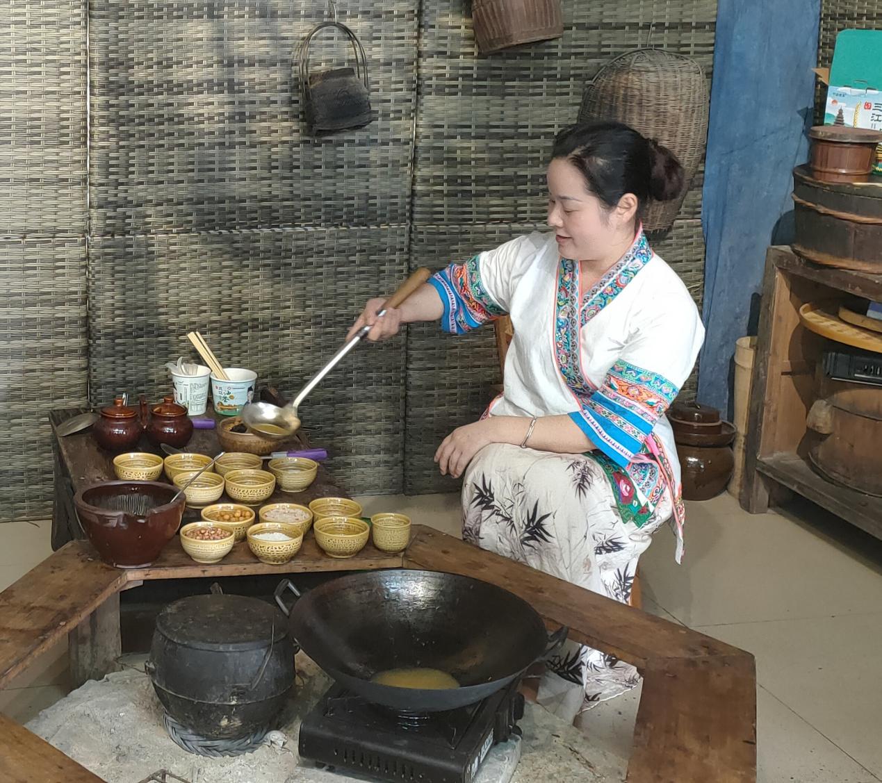 杨应溪现场展示打油茶(全春丽 摄)