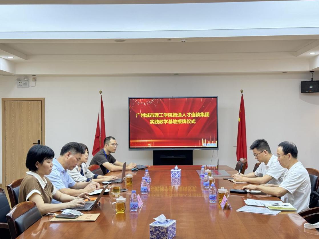 本网讯(记者 高煜)9月3日上午,我校管理学院与广东智通人才连锁股份有限公司在智通公司举行“教学实践基地”签约暨挂牌仪式,广东智通人才连锁股份有限公司总经理李纲领、智通研究院院长姜允萍、智通研究院总监周莉,我校管理学院党总支副书记戴杰,工商管理系负责人等相关领导和老师参加仪式。