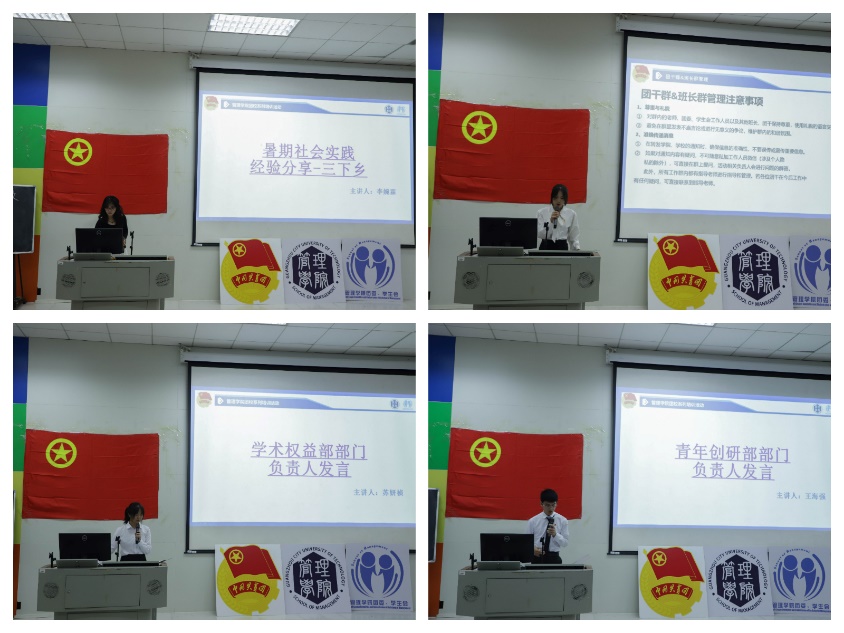 最后,由管理学院团委、学生会各部门负责人进行团务培训,他们围绕共青团基础团务知识、“三会两制一课”制度、学社衔接、智慧团建系统操作等内容进行了详细介绍和实操演练,有助于新生团干在日后工作中更好地服务于班级同学,为班级建设打下了基础。本次团校开班仪式的开展,不仅明确了“第二课堂成绩单”制度的具体要求,还激发了2024级团干们对全面发展、多元成长的热情,为他们在大学期间规划丰富多彩的课外活动提供了清晰指南。