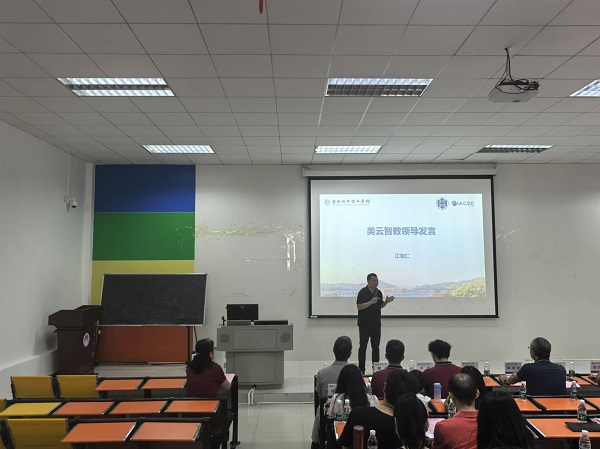 美云智数全国渠道生态总经理江宝仁在发言中介绍了美的集团在数字化转型方面的成功经验。他指出,数字化是企业提升竞争力的关键所在,企业与高校之间的合作对推动数字化技术的普及和应用具有重要意义。他希望此次培训能为学院教师带来新的视角和思路,助力学院在数字化人才培养方面的进一步发展。