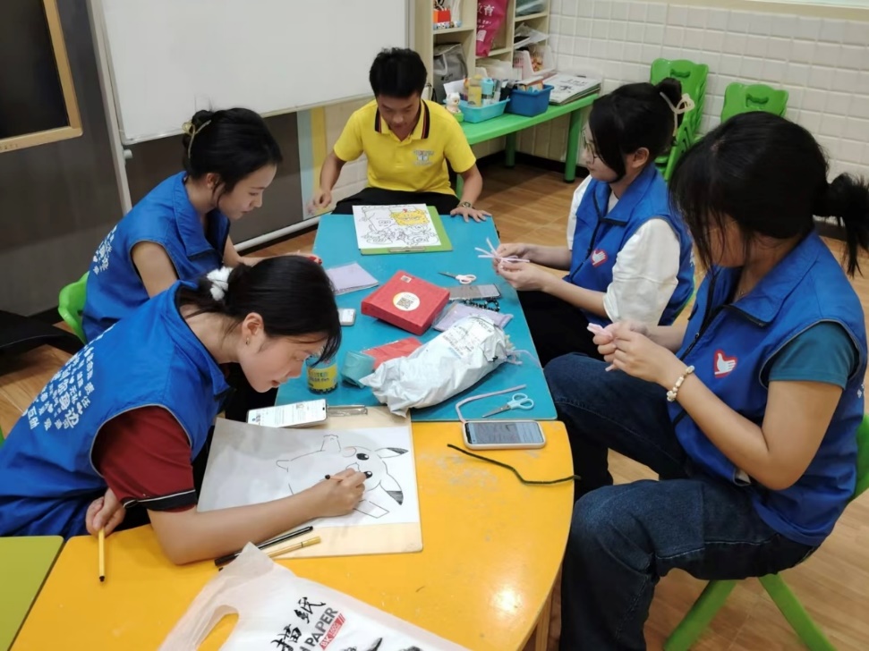 志愿者为孩子们做手工(花都星语特殊儿童机构 摄)