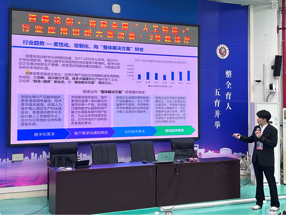 本网讯(记者 魏无双)11月16日至20日,管理学院副院长李岩组织带领观景元、黄炜、王瑾蔺、陈卓权四名学生参加了全国首届“人工智能+”行业应用大赛,并荣获全国二等奖(企业组和高校组各仅三个名额)。在为期四天的激烈角逐中,我院的“BOM.AI——制造业物料清单智慧系统”项目团队从全国四百多个参赛团队中脱颖而出,经过初赛和复赛的严格筛选,成功晋级决赛。在决赛中,同学们与来至斯坦福大学、南京大学、电子科技大学、四川大学、香港科技大学等一流学府的博士团队同台竞技。项目在李岩副院长、魏无双老师、王菲老师,以及技术顾问陈志轩老师和杨永吉老师指导下,深入挖掘行业需求,识别行业痛点,制定解决方案,并通过代码实施和模拟路演,充分展示商科和工科学生的出色配合与创新能力。项目具备高度的可落地价值,路演表现出色,赢得了现场评审专家的一致好评和推荐。
