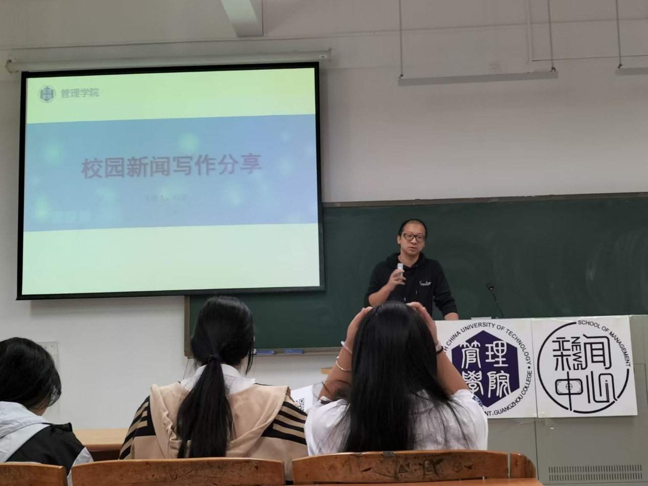 本网讯(记者 符嘉煜)为了提高学生新闻写作水平,加强新闻人的职业素养,做好学院新闻宣传工作,管理学院于11月21日下午开展了“德才兼备的新闻人”学生新闻写作培训讲座。由管理学院新闻宣传中心指导老师应澎主持。
