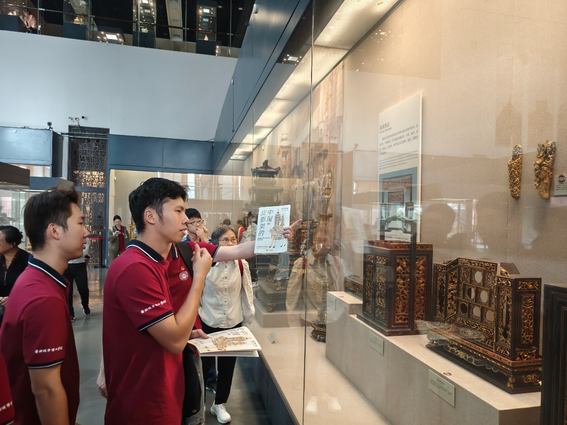随后,师生们参观了“广东省自然资源展览”,探索了矿产资源、宝石和中草药的奥秘,并通过观察动物标本,了解了陆生动物和海洋动物的多样性。在艺术导赏的寻宝之旅中,大家穿梭于陶瓷、端砚和潮州木雕三个展厅之间,欣赏了西游记故事瓷枕、金漆木雕大神龛、千金猴王砚等精美文物,从不同角度欣赏文化艺术品,并发现生活中美的艺术。