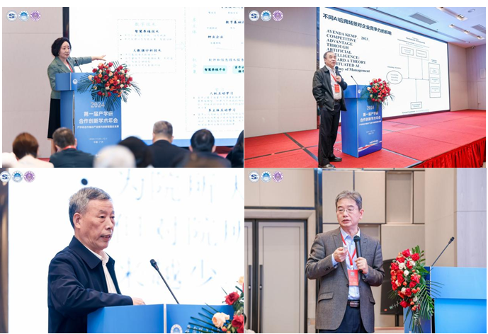 蔡莉教授以《创新驱动创业的机会集》为题进行了主旨报告,通过比亚迪新能源汽车企业案例分析,探讨了大企业如何通过数字化转型和生态网络建设带动行业发展,并围绕创新驱动创业的定义、特征和过程模型,进一步构建了创新驱动创业的机会集理论模型。李垣教授以《智能与安全的协同:企业AI战略选择》为题,探讨了企业在AI技术智能性与安全性协同方面面临的挑战,讨论了AI智能性与安全性失衡带来的利弊问题,提出了AI技术智能程度与安全程度的战略组合,以及不同组合状态的能力建设与AI战略演进。柳卸林教授在报告《从技术驱动到科学驱动的产学研合作》中分析了中国产学研合作的现状与瓶颈,强调了基础研究对产业创新的重要性,提出基于科学的产学研合作的路径设想。柳卸林教授强调,基于科学的产学研合作是中国未来创新体系中的关键。