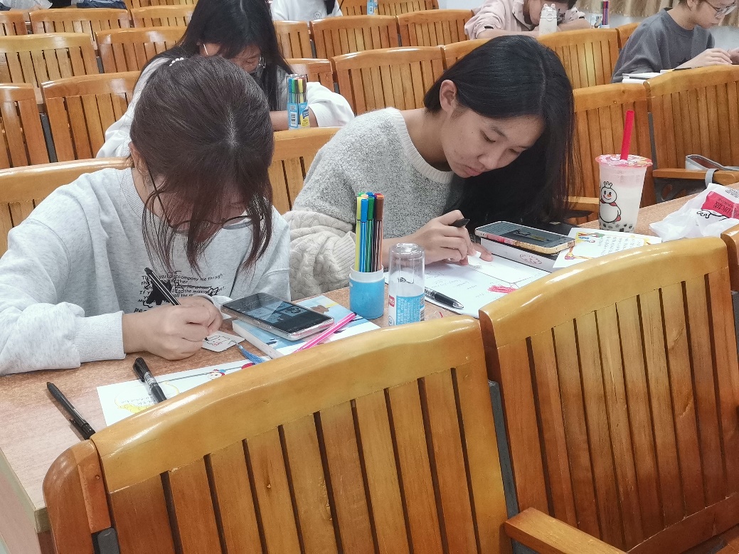 本次活动吸引了众多同学前来参加,他们运用自己的独特创意和视角,设计出各具特色的书签作品。活动现场提供绘画工具和各种材料,包括书签、流苏、画笔等,同学们尽情创作,一展芳华。参与者们精心设计书签的版面和内容,有的以古典诗词为主题,有的以传统纹饰为灵感,还有的结合了现代元素和个人创意。每一个书签都成为表达个性和情感的载体,将对书籍的理解和情感融入到书签设计中。