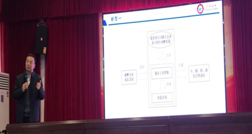 主题报告环节,广州大学粤港澳大湾区经济研究院院长、社科处处长张延平教授率先做了“专业孵化器孵育与专精特新企业‘突破’卡脖子技术”的主题报告,他从构建的两个模型出发,系统性地阐述了专业孵化器依托母公司链主企业,以服务主导逻辑为指引开展创新创业生态系统价值共创,来梯度培育专精特新企业的路径和逻辑。此外,也阐释了最新的团队研究成果:“双跨”平台如何数智赋能专精特新企业突破“卡脖子”技术难题。该报告主题契合时代所需,为专业孵化器的高质量孵育以及“卡脖子”技术突破提供了极具价值的指引参考。