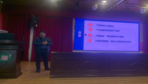 广东金融学院公共管理学院院长何亦铭以“商科大学向何处:广东金融学院产教融合的实践”为主题,分析了目前产教融合存在的问题和解决思路,特别是指出了目前产教融合的堵点和难点是:当前“产教融而不深、校企合而不作”,学校“一头热”、企业“一头冷”等问题还未彻底解决,如何进一步深化校企合作、产教融合,更好地赋能创新创业和经济社会高质量发展,需要进一步地开拓性探索与实践。
