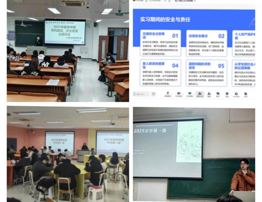 班会上,各班根据本班学生学业情况,对班级的学习氛围和学习态度进行了总结与反思,并提出了新学期的学风建设目标。通过分享优秀学生的学习方法和学习经验,鼓励学生在新学期中制定合理的学习计划,明确学习目标,积极参与学术活动,努力提升学业水平。同时,辅导员和班主任还强调了诚信考试和课堂纪律的重要性,要求同学落实“三带”(带书本、带笔记本、带笔及相关学习资料)和“三率”(到课率、抬头率、前排入座率),做到不迟到、不早退、不旷课,积极参与课堂活动。此外,毕业班还对毕业论文写作、考研复试指导等内容进行了讲解。