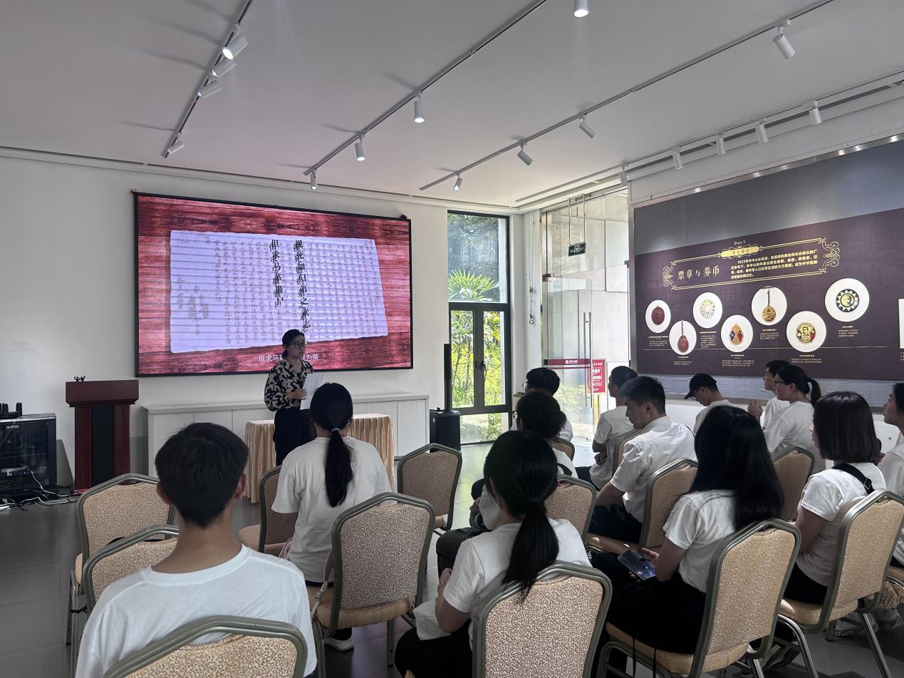 缅怀结束后,师生党员前往黄花文化馆,参观“天下为公:一代伟人孙中山”展览。学院学工办副主任师雯俏在馆内开展题为《传承红色基因 弘扬革命精神 争做新时代纪律先锋》的微党课,她以“三块精神丰碑”为主线展开论述:从黄花岗烈士“碧血横飞、浩气四塞”的献身精神,到长征途中红军战士“不拿群众一针一线”的纪律坚守,直至新时代中央八项规定精神的传承发展。她强调这些镌刻着名字的青石,既是烈士们用生命铸就的丰碑,更是共产党人永不过时的纪律刻度。