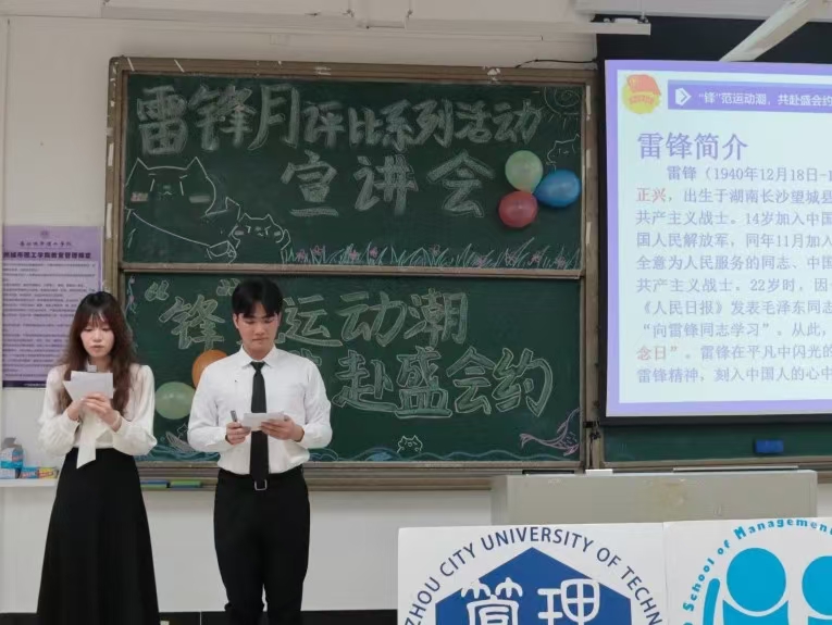 20日,学院团委在A5-201召开雷锋月评比系列活动宣讲会。宣讲会旨在深入讲解雷锋精神的深刻内涵及全运会的相关知识和意义,动员同学们参加线上体育知识竞赛和线下趣味运动项目,此次宣讲会师生共计150余人参加。