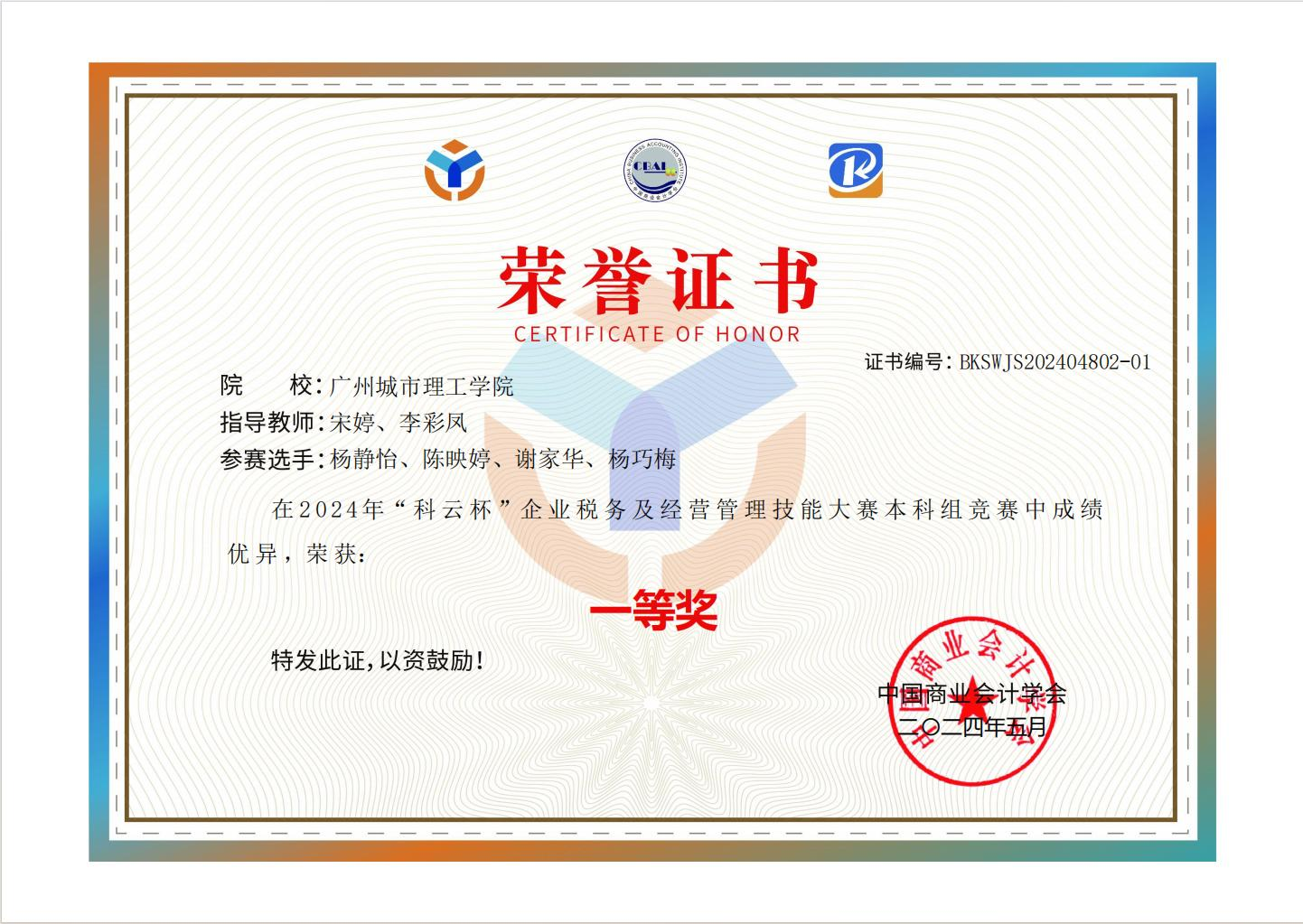 本网讯(记者 宋婷)5月25日,2024年“科云杯”企业税务及经营管理技能大赛圆满落幕。广州城市理工学院派出的两支参赛队伍凭借扎实的专业知识和出色的团队协作能力,在比赛中脱颖而出,分别荣获全国赛一等奖和全国赛二等奖,展现了学校在财会类实践教学和人才培养方面的卓越成果。