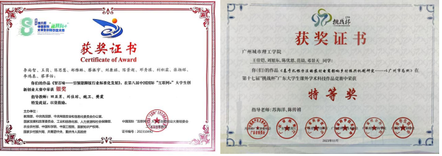 中国国际大学生创新大赛国赛银奖和“挑战杯”省赛特等奖(魏卫 陈传禧 提供)