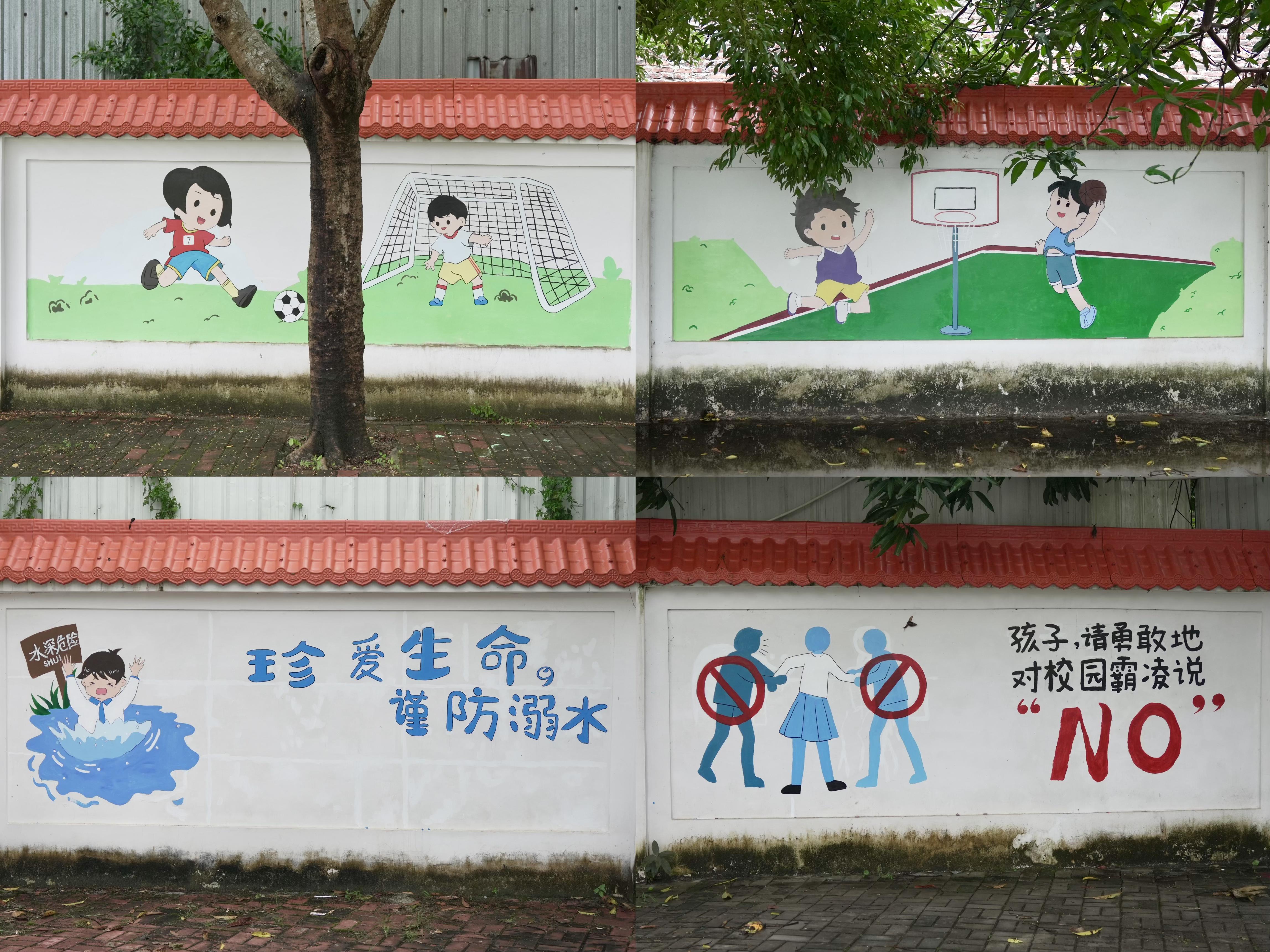 墙绘期间,实践团还邀请学生参与涂色,使美育与安全教育潜移默化地浸润童心。安塘中心小学成校长表示:“大学生志愿者们让墙面变得五彩斑斓,篮球小子、足球小将的身影活灵活现,安全知识藏于童趣笔触中。志愿者们顶着烈日调颜料、补细节,这些墙绘是带着温度的文化印记,让校园的每一处都变得生动鲜活。”