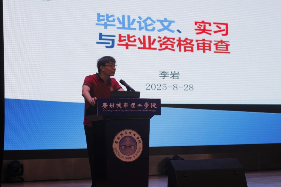 随后,李岩就毕业论文、实习与毕业资格审查等关键环节作出专题指导。他系统解答了“大四学年的核心任务”“毕业论文的撰写规范与时间节点”“专业实习与毕业实习的具体要求”以及“顺利毕业的基本条件”四大问题,为同学们逐一拆解任务、明确要求、指明路径。李岩强调了毕业论文是大学生完成学业的标志性作业,并提醒同学们认真对待实习,确保各项毕业条件达标,顺利完成学业,为毕业与职场过渡做好全面铺垫。
