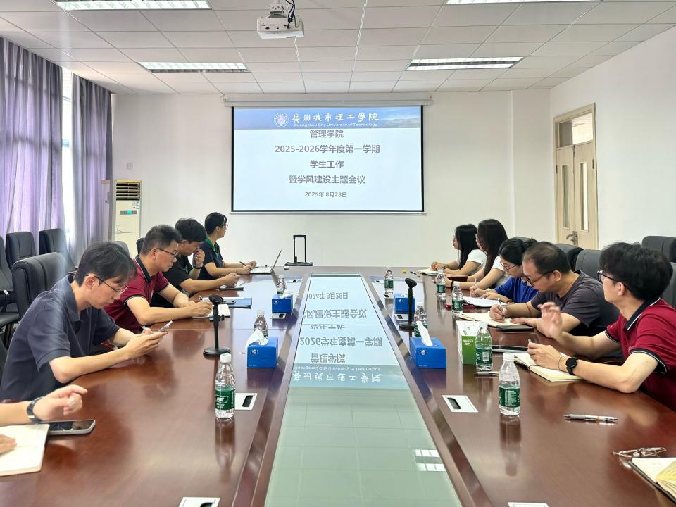 本网讯(记者 高煜)为统筹推进新学期学生工作,筑牢学风建设基础,8 月 28 日,管理学院在 A8-302 会议室召开 2025-2026 学年度第一学期学生工作暨学风建设主题会议。学院领导、全体辅导员参会,明确新学期学生工作重点方向与实施路径,具体内容如下: