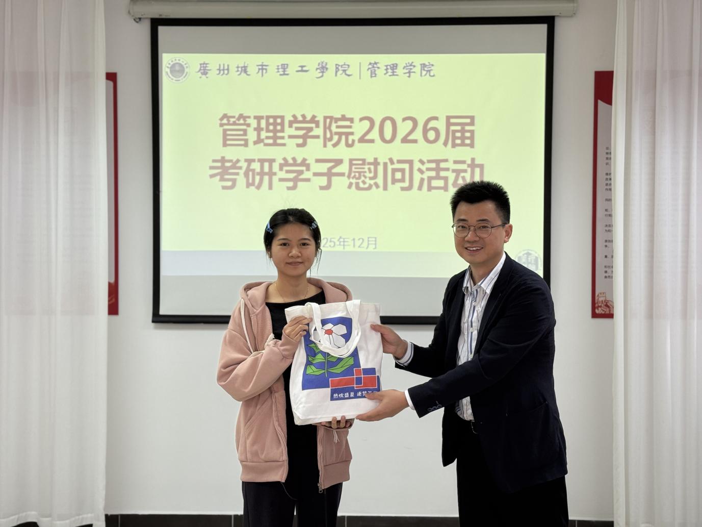 活动尾声,学院老师亲手为每一位与会学子送上精心准备的考研暖心“加油包”,这份承载着学院殷切祝福的礼物,将物质关怀与精神鼓励融为一体。学子们接过礼品后,脸上洋溢着感动的笑容,纷纷表示将牢记师长嘱托,把这份温暖转化为冲刺备考的强大动力,全力以赴迎接即将到来的考试。