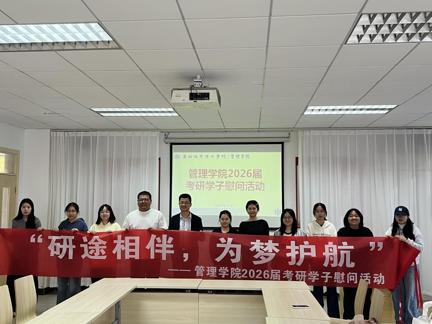 此次考研慰问活动是管理学院践行“以学生为中心”育人理念、深化人文关怀的生动实践,不仅为考研学子送上了精准的支持与鼓励,更凝聚了师生情谊,营造了互助奋进的良好氛围。未来,学院将持续聚焦学子成长需求,在学业指导、心理疏导、生活保障等方面提供全方位支持,为每一位追梦人保驾护航,助力学子们在青春赛道上书写精彩答卷,圆梦理想院校。