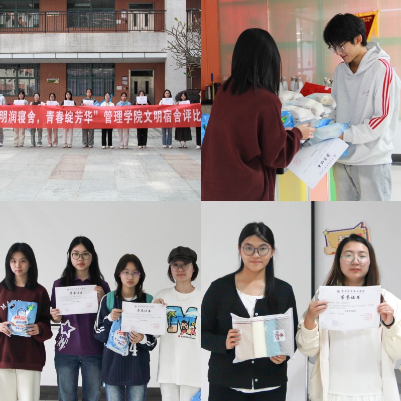 12月5日中午,管理学院在A8-109举办了“优秀学风文明宿舍”颁奖活动,对获奖学生代表进行表彰,以激励更多同学向他们学习,共同营造良好的宿舍环境。2024级财务管理专业蔡佳易同学分享道:“此次活动不仅增强了我们宿舍的凝聚力,也让大家更注重共同维护学习环境。定期整理内务、安排集体阅读,使我们的生活更规律,学习氛围也更浓厚。”2024级会计学专业郭霁同学也表示:“我深刻体会到,整洁温馨的宿舍不仅是生活空间,也是学习的重要场所。良好的环境促进了室友间的交流互助,也让我每天的学习更有动力。”