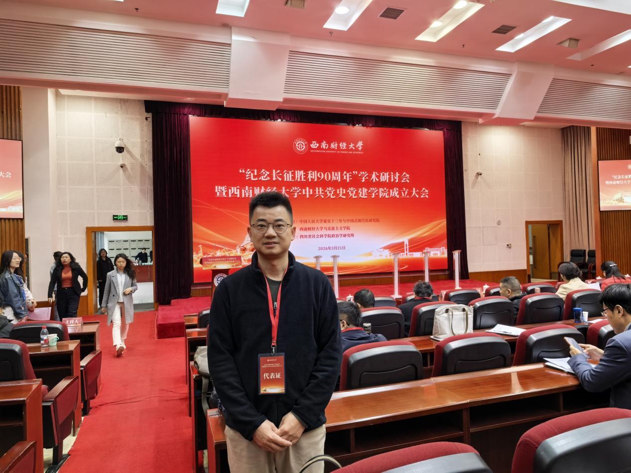 本网讯(记者 应澎)3月20日至22日,管理学院党总支副书记戴杰赴西南财经大学马克思主义学院参加以“纪念长征胜利90周年”为主题的学术研讨会。研讨会由中国人民大学延安十三年与中国式现代化研究院、西南财经大学马克思主义学院联合主办,四川省社会科学院政治学研究所承办。
