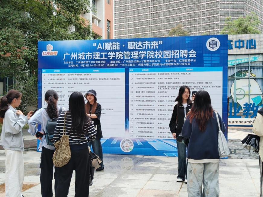 本网讯(记者 高煜)为深入落实就业优先战略,深化校企协同育人,精准搭建毕业生与优质用人单位对接平台,助力2026届毕业生实现更高质量、更充分就业,4月24日下午,广州城市理工学院管理学院“AI赋能・职达未来”主题校园招聘会顺利举行,学校就业指导中心负责人到会指导。